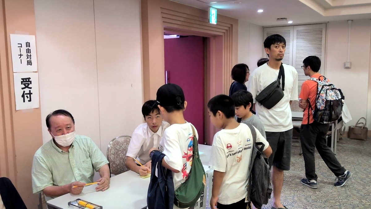 手合い係は渡辺さん(渡辺九段のお父さん)大きな将棋大会、イベントは毎回お手伝いに来ていただいてます。